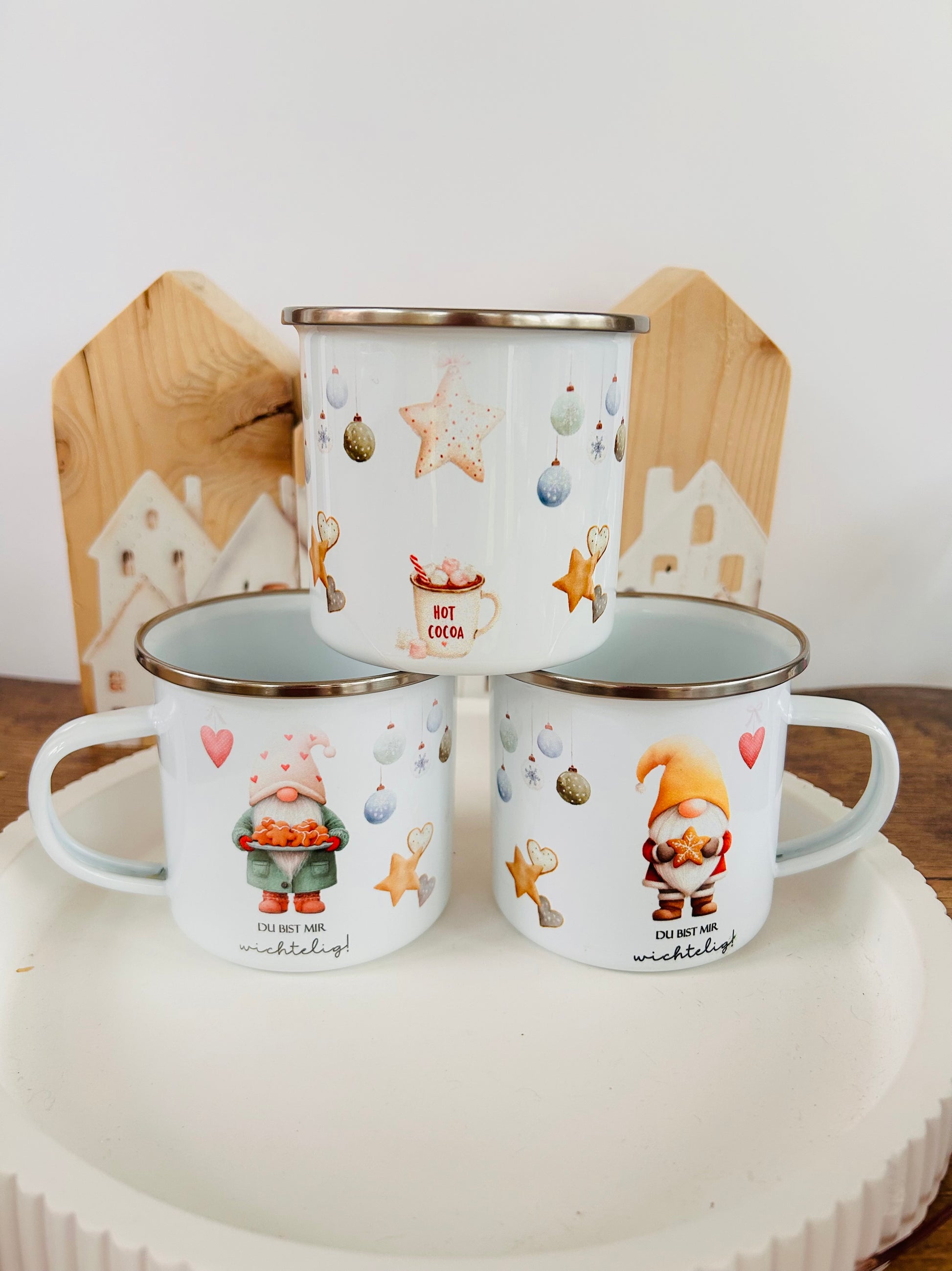 Niedliche Emaille Tasse alle Wichtel Fans.