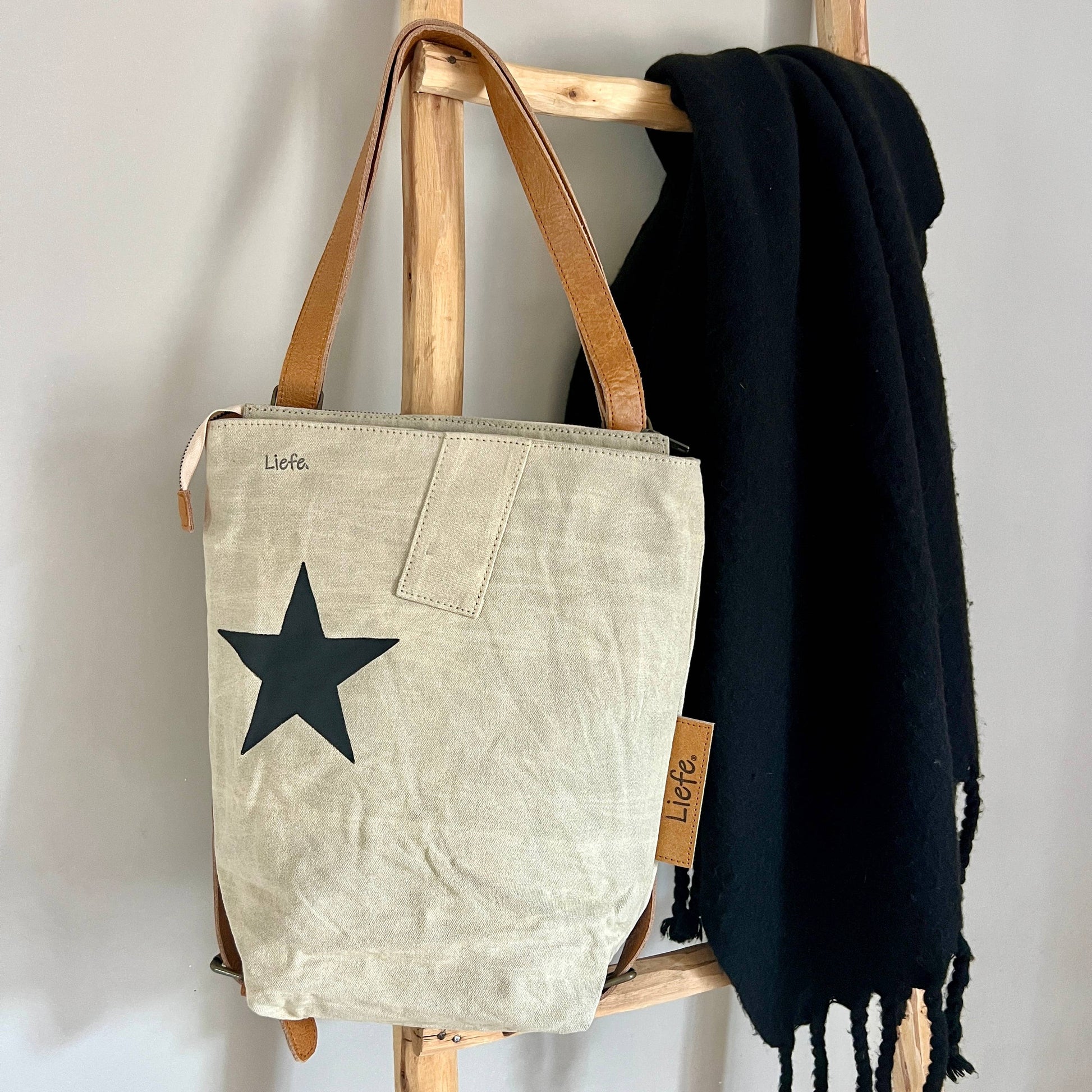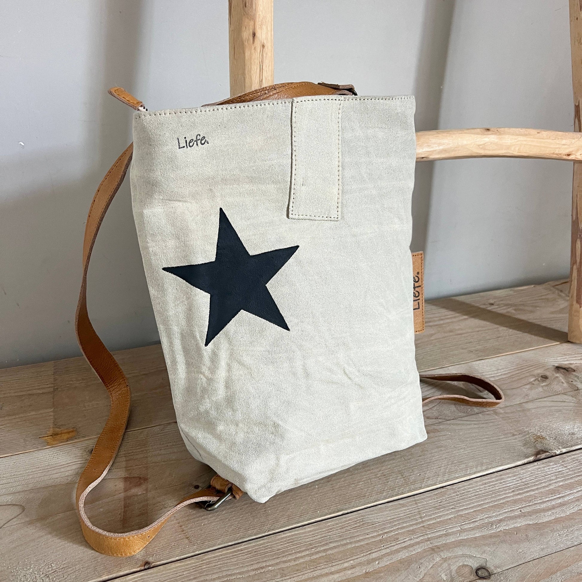 Rucksack klein Stern schwarz (vintage leichtes Segeltuch) NEU