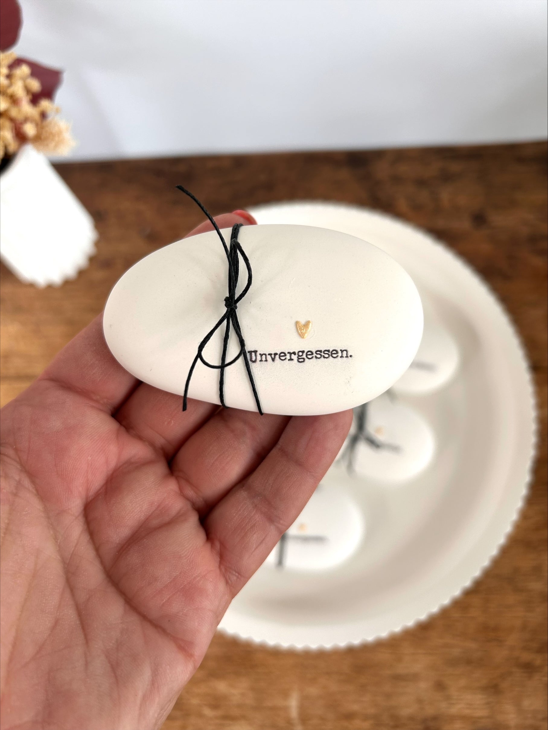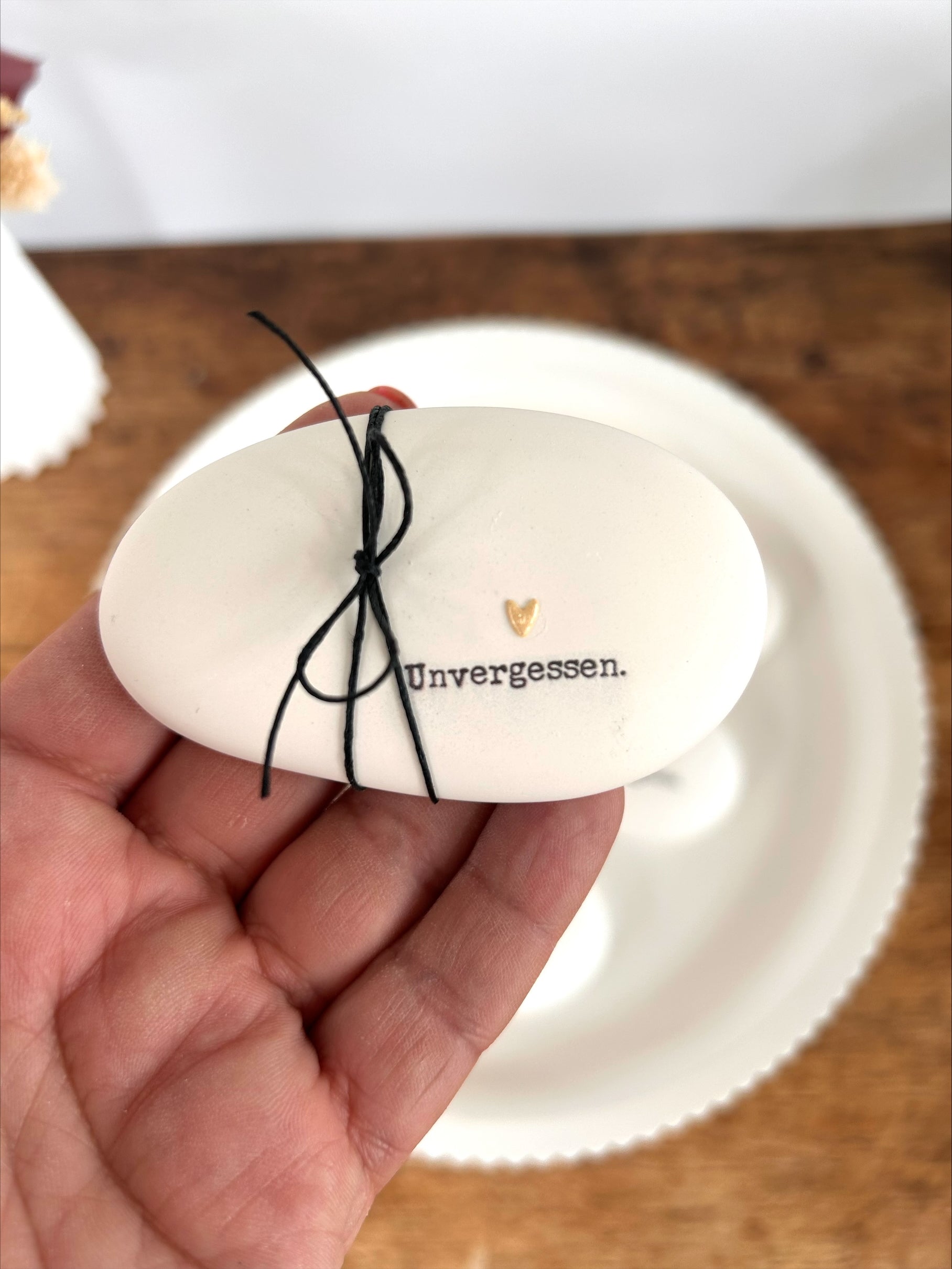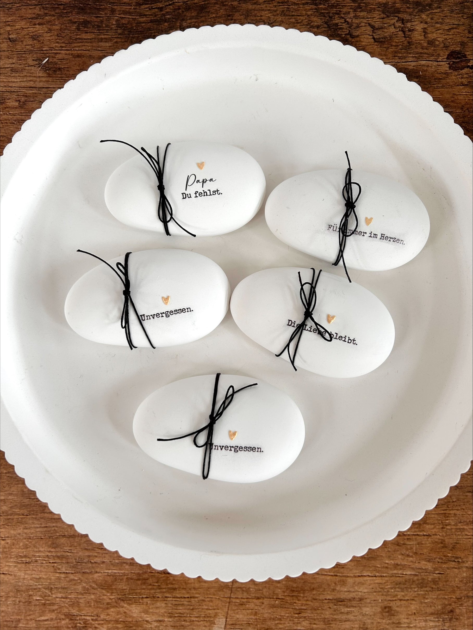 Jeder Stein ist individuell gestaltet und kann auf Wunsch personalisiert werden – mit einem Namen, einem Datum oder einer kurzen Botschaft. So entsteht ein einzigartiges Erinnerungsstück, das Halt schenkt und die Erinnerung bewahrt.